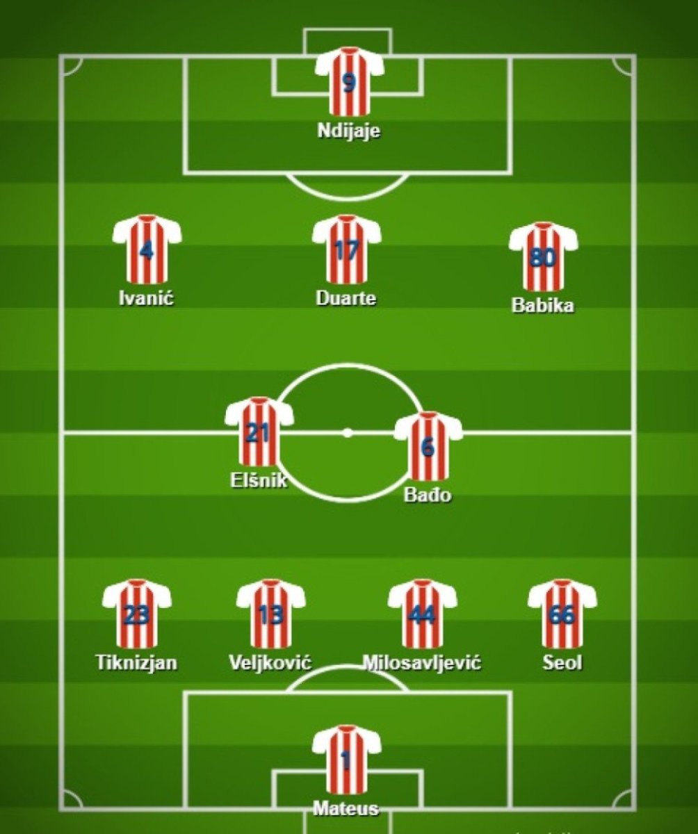 Dakle, velike su šanse da on započne utakmicu na poziciji štopera i to ispred Frenklina Teba Učene, Nigerijca koji je na "Marakanu" stigao kao pojačanje prošlog petka, odnosno, ispred Stefana Lekovića, koji je u principu četvrta opcija u centralnom delu odbrane. Ostatak odbrane, očekivano, činiće Jung Vu Seol, Miloš Veljković i Nair Tiknizjan.
