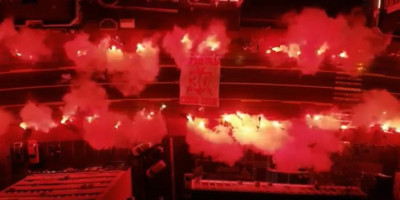 Pored bakljade, orila se i pesma "delija", skandirali su navijači Zvezde "svi na stadion'', dok zabavu nije pokvarila policija.