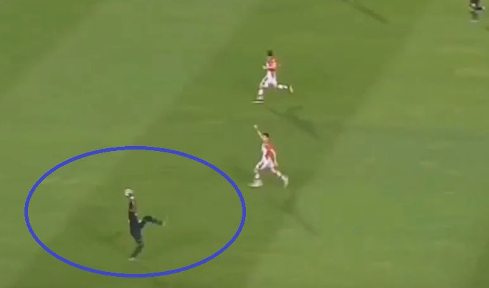 Zanimljiv detalj dogodio se pred kraja prvog poluvremena, pre vodećeg gola domaćina Milana Pavkova. Senegelac iz redova danskog šampiona Dam N'Doje napravio neverovatan potez. Dugu loptu koji nije mogao da stigne, napadač gostiju je uhvatio rukama u stilu najboljeg NBA košaraša.