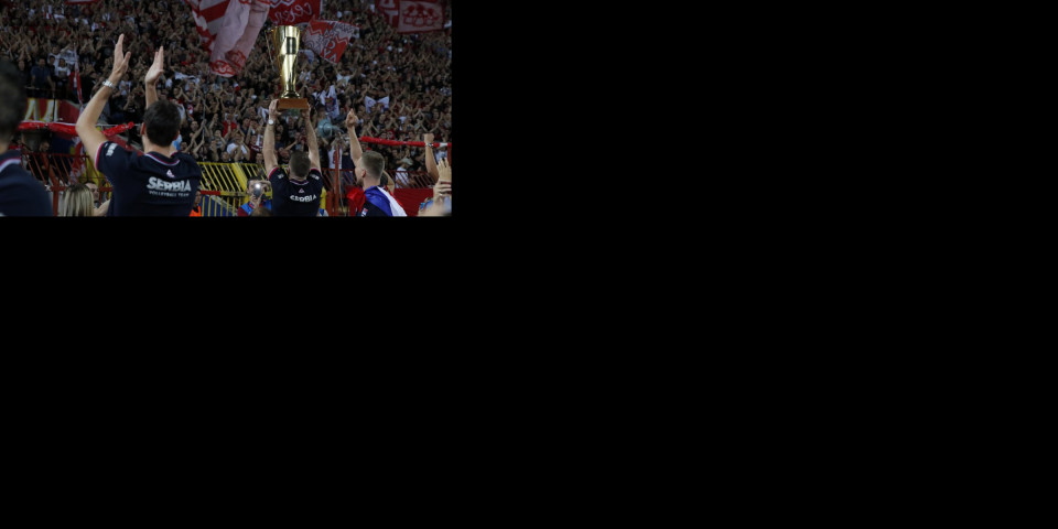 Tribine stadiona Crvene zvezde ujedinile su se tokom pozdravljanja odbojkaša Srbije koji su prošetali atletskom stazom pred početak meča sa Olimpijakosom.