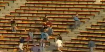 - Oni su nas prvo gađali sa istoka, sa naše desne strane, da bi im se odmah pridružili i ovi sa južne strane "sedenje", tribina iznad nas. Kamenje je razbijalo glave, pa smo mi morali da pokidamo limene reklame da bismo se zaštitili. U međuvremenu, na suprotnoj strani, oni razvaljuju ogradu i počinju tuču sa policijom.