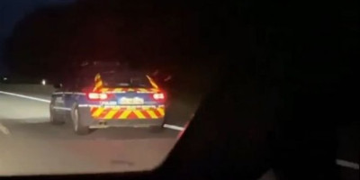 On je objavio kratak snimak u kom se vidi da svojom "mečkom" G klasa prolazi pored policijskog Audija na "autobanu", odnosno autoputu gde vozači mogu da idu veoma brzo.