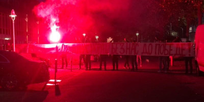Delije su napravile bakljadu i razvile su transparent ispred sa motivacinom porukom za svoje ljubimce.