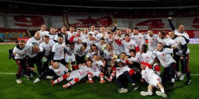 Zbog pandemije koronavirusa nema navijača na tribinama, te su crveno-beli proslavu napravili odmah posle meča.