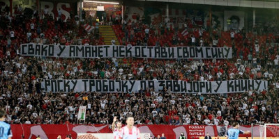 Najverniji navijači Zvezde na severnoj tribini razvili su transparent povodom godišnjice od pogroma srpskog stanovništva iz Hrvatske.