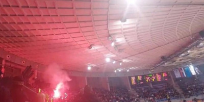 U jednom trenutku, dok su navijači Crvene zvezde gromogoglasno bodrili svoje ljubimce zbog visoke prednosti u duelu sa Kragujevčanima, u dvoranu su ušle pristalice Radničkog, popularni Crveni đavoli.