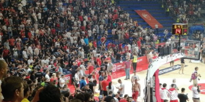 Nije se navijačima dopala ta odluka ABA lige pa je poput stampeda gotovo čitava tribina sišla na parket. Velika većina njih još uvek je u hali, peva i navija, ali će uskoro i oni morati napolje. Ispred pionira je ogromna gužva i pitanje je koliko će vremena biti potrebno da se utakmica nastavi...
