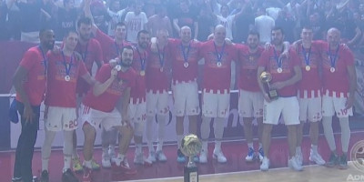 Podsećamo, Crvena zvezda je u februaru osvojila Kup Radivoja Koraća pošto je u finalu bila bolja od Partizana. Pre svega desetak dana isti rivali su se borili za trofej u ABA ligi, a Radonjićeva četa je ponovo bila uspešnija. Za kraj, protiv FMP-a izvojevan je i treći trofej koji je podigao Branko Lazić.