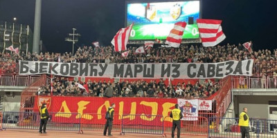 - Bjekoviću marš iz saveza - piše na transparentu "delija".
