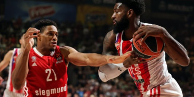 Košarkaši Crvene zvezde igraju meč petog kola protiv Bajerna iz Minhena, a utakmici prisustvuju i fudbaleri Zvezde Stefan Mitrović i Kingsi Kangva