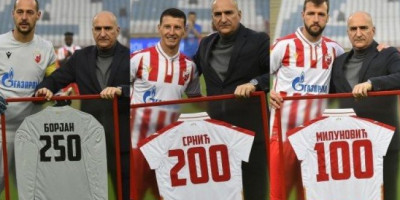 Jubileje u Zvezdinom dresu proslavili su Milan Borjan, Nemanja Milunović i Slavoljub Srnić.