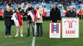 Sinovima našeg legendarnog fudbalera uručeni su dresovi Crvene zvezde i Vojvodine. Dušan i Nikolas primili su uramljen dres svog oca od predsednika kluba Svetozara Mihailovića.