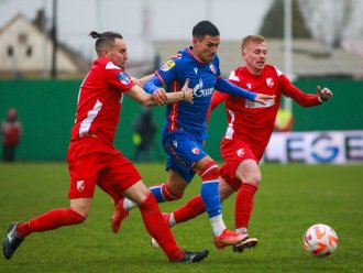 43. minut - GOOOOOOL! Ekspresan odgovor Crvene zvezde, tandem Ivanić-Katai slomio je otpor domaćina, još uvek nije poznato kome će se pisati gol budući da je Ivanić ubacio u peterac, a na snimku se ne vidi jasno da li je Katai zakačio loptu - 1:1!
