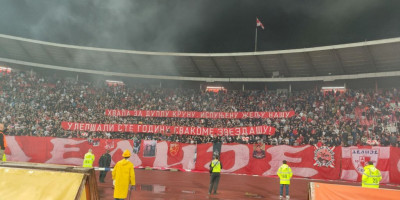 Kada je sudija Milan Mitić odsvirao poslednji sudijski zvižduk, navijači Zvezde razvili su transparent preko cele tribine na kojem je pisalo: