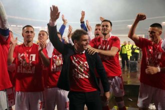 Odlazeći trener Crvene zvezde Miloš Milojević posle osvajanja Kupa Srbije i treće u nizu duple krune završio je na rukama fudbalera.