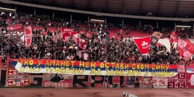 "Svako u amanet nek ostavi svom sinu srpsku trobojku da zavijori u Kninu", napisali su navijači Zvezde na transparentu.