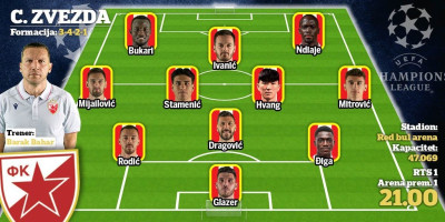 Najistureniji u timu biće Šerif Ndiaje. I on se proslavio protiv Jang bojsa, doveden je poslednjeg dana prelaznog roka da pravi razliku u ovakvim utakmicama i motiva ne bi trebalo da mu manjka. Ovakav tim je izašao i pred Švajcarce, samo u nešto drugačijoj formaciji, pa će sutra više podsećati na Siti. Imaće sa čim Zvezda pred favorizovanog rivala.