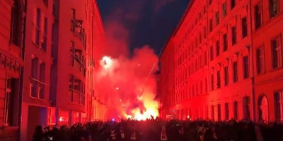 Nekoliko hiljada Delija krenulo je ka Red Bul Areni, a pred polazak su priredili veliku bakljadu na trgu.