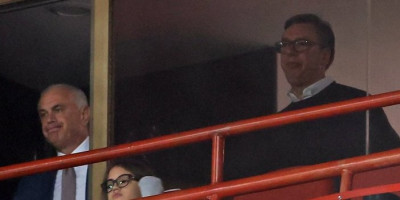 Predsednik Srbije Aleksandar Vučić ušao je na najveći stadion u Srbiji oko pola časa pred početak meča, tako da uživo prati izabranike Baraka Bahara u pohodu na evropsko proleće.