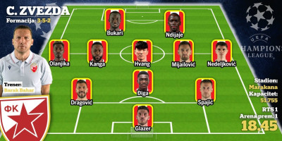 Izgleda da trener creno-belih planira da ide na sve ili ništa protiv "građana", jer u svakom slučaju nema poente da čuva rezultat po svaku cenu. Sudeći po njegovom raspoloženju večeras, rasterećno pristupa utakmici protiv evropskog šampiona i izvodi prilično hrabar sastav. Čini se da će ovo biti dosta ofanzivno izdanje Zvezde, iako će sredina biti lepo zabarikadirana.
