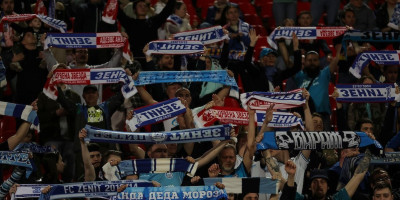 Tu su i navijači Zenita. Njih nekoliko stotina. Smešteni su na Jugu i stakli su transparent posvećen tragediji koja je zasedila Moskvu. Na njemu piše "Moskva, tugujemo".