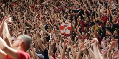 Dvorana je krcata, a crveno-beli imaju ogromnu podršku sa tribina.