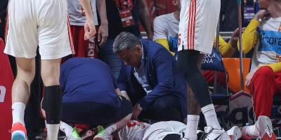 Na kraju su članovi stručnog štaba ušli sa klupe Crvene zvezde i odneli ga sa parketa u svlačionicu.