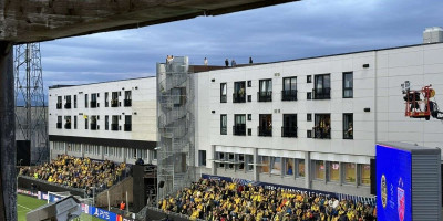 Neki su se zato snašli, pa su se popeli putem stepenica na krov zgrade u sklopu stadiona, dok neki od njih gledaju sa prozora zgrade.