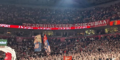 "Delije" su i sinoć na utakmici Crvene zvezde i Bajerna iz Minhena (101:79), na tribinama Beogradske arene istakli pomenutu parolu, a kako je to izgledalo možete pogledati na fotografijama ispod.