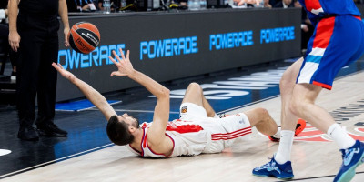 Krilni košarkaš Crvene zvezde, Ognjen Dobrić, nezgodno je pao prilikom jedne odbrane u pokušaju da spreči napad turskog Efesa.