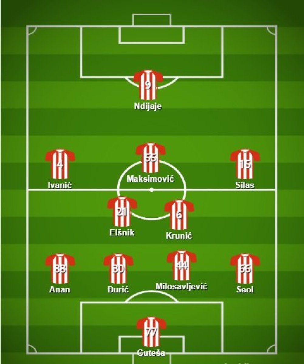 Nešto zanimljivije je u poslednjoj liniji. Mesta štopera namenjena su bonus igračima - Andreju Đuriću (21) i Veljku Milosavljeviću (17). Momcima iz Zvezdine omladinske škole podršku pružaju Jung Vu Seol sa desne, odnosno Ebenezer Anan sa leve strane terena.