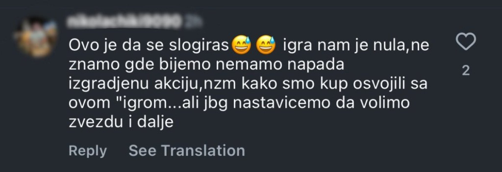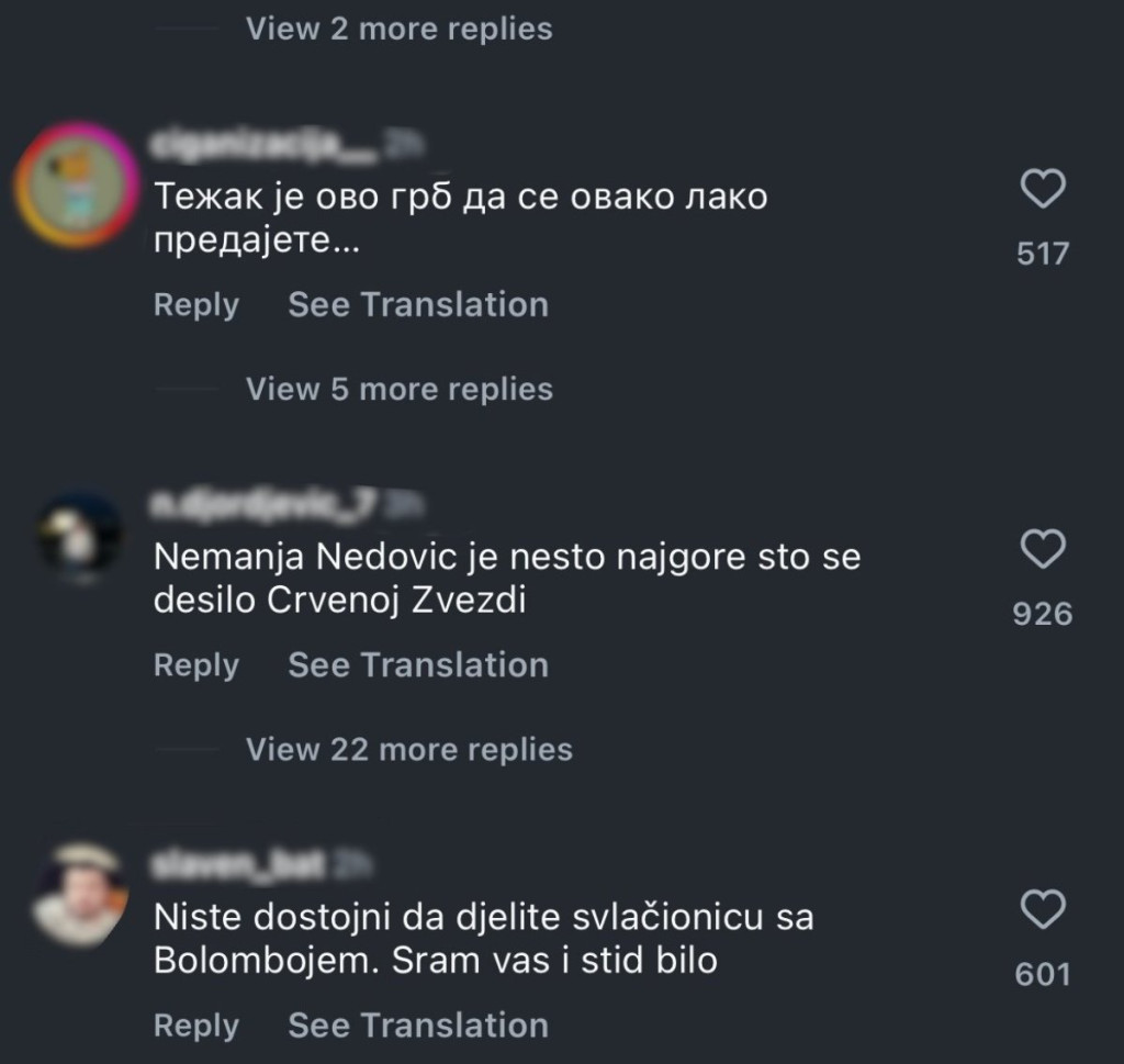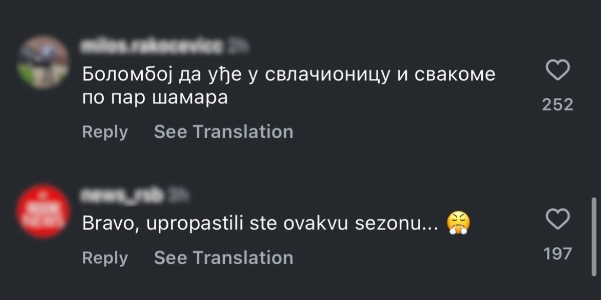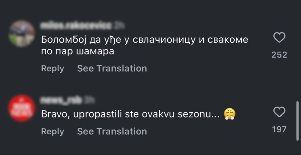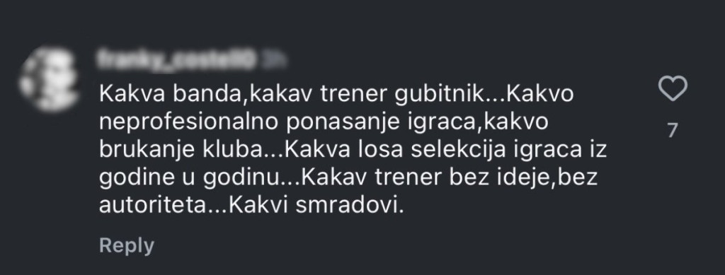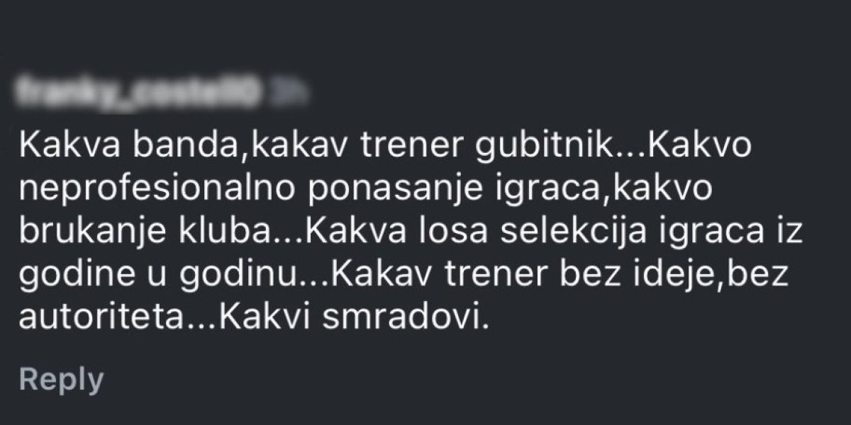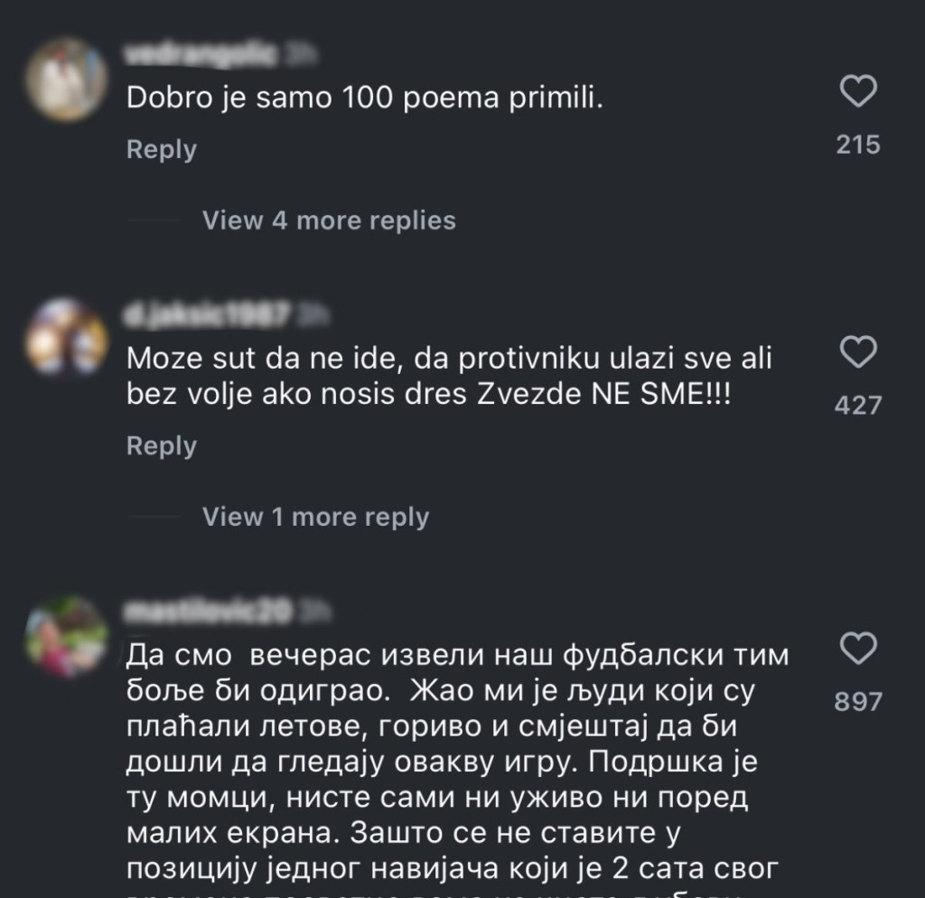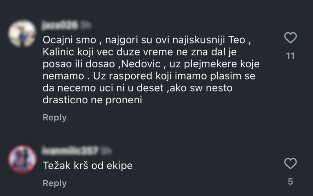 Nakon poraza od Bajerna, "delije" su na društvenim mrežama iznele niz kritika na račun ekipe i stručnog štaba. Prema njihovom mišljenju, glavni problem nije samo forma igrača, već i loša selekcija tima i nedostatak jasne taktičke vizije. Posebno su na udaru pojedini igrači, poput Nemanje Nedovića, Dejana Davidovca, Rokasa Gedraitisa i Ognjena Dobrića, za koje navijači smatraju da više ne zaslužuju da nose crveno-beli dres.