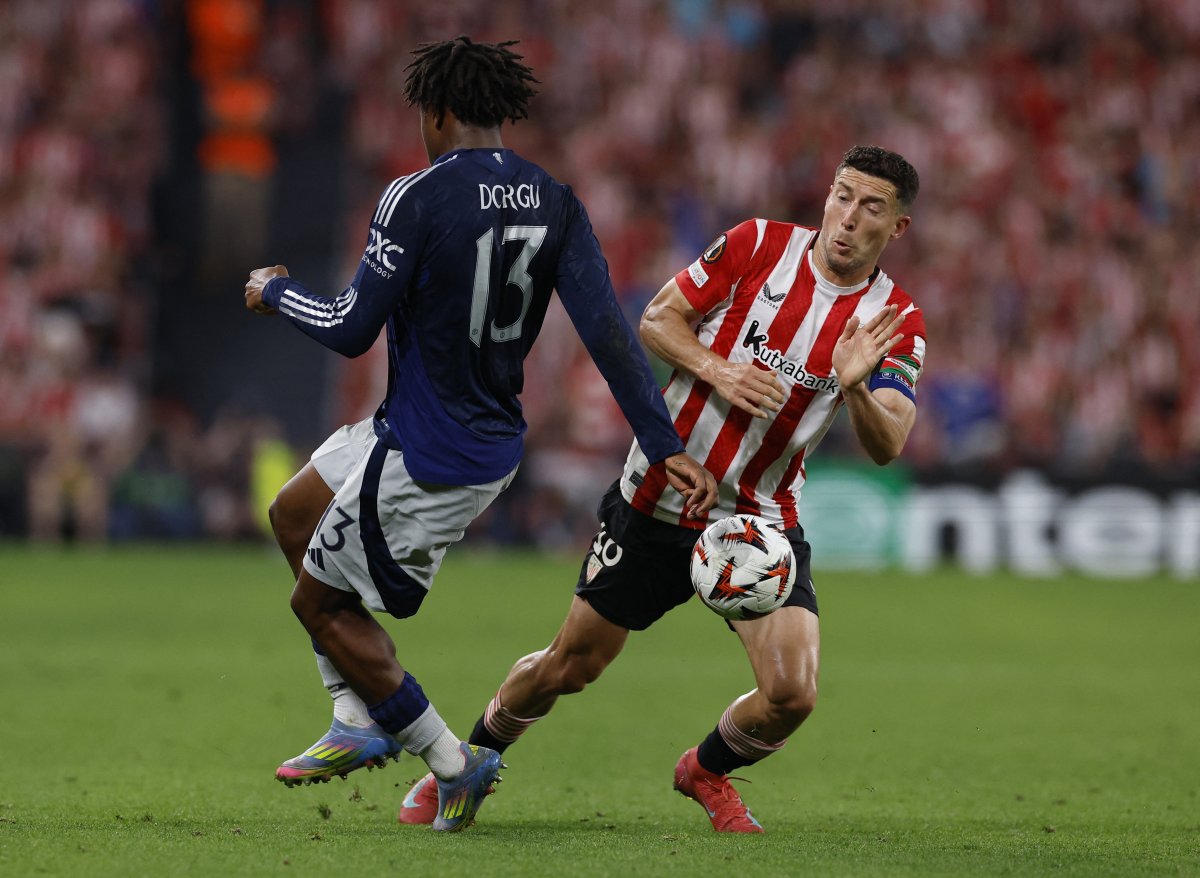 32. minut - Možda u Bilbau vidimo penal! Mazraoui je uputio dodavanje pred gol Atletika, a onda je Hojlund srušen rukom Vivijana. Sudija Eskas ide da gleda snimak na signal iz VAR sobe!