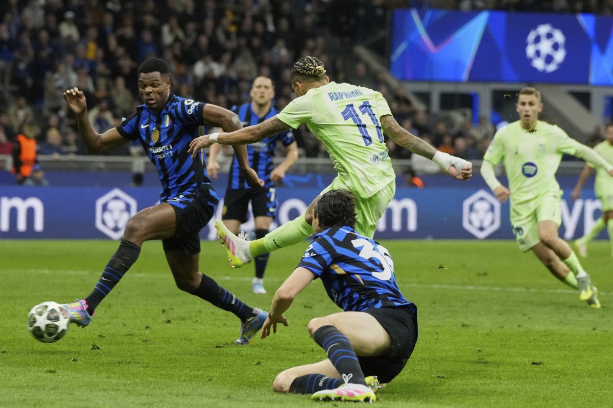 Početak meča u Milanu počeo je u znaku Barselone, koja je nametnula strahovit tempo, napadali su u uvodnim minutima rivala koji gotovo da nije mogao da dođe do daha. Uspeo je Inter u nastavku da se oslobodi pritiska i krenuo u ofanzivu, ređale su se prilike pred golom Ščensnog, koji je čuvao svoju mrežu, ali je u 21. minutu ostao nemoćan. Usledila je akcija u tri poteza, pošto je Dimarko ukaro loptu na nekih 30 metara od gola Barselone, potom proigrao usamljenog Damfriza, a ovaj nesebično dodao kapitenu Martinezu, koji pogađa prazan gol za delirijum u Milanu.