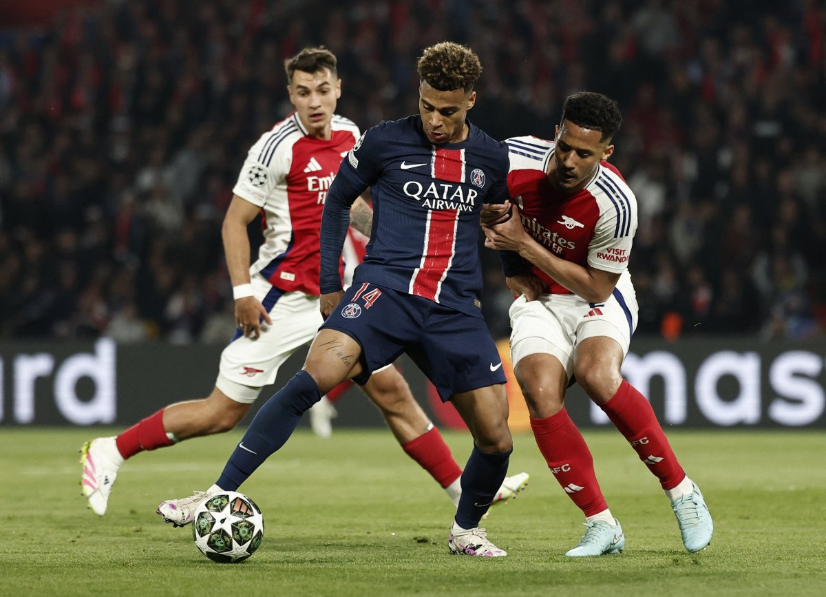 PSŽ je poveo 1:0, a ukupno 2:0 u dvomeču. Arsenal nastavio da preti, ali bez konkretizacije Do kraja poluvremena "tobdžije" su nastavile da traže put ka golu, uglavnom preko desnog krila gde je dominirao Saka. Međutim, Martineli i društvo nisu uspevali da realizuju svoje prilike, dok je Due na drugoj strani u nekoliko kontri donosio pogrešne odluke.