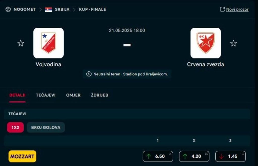 Prema preliminarnim procenama bukmejkera, osmostruki uzastopni šampion Srbije slovi za ubedljivog favorita protiv popularnih "lala". Naime, kvota da Crvena zvezda slavi u Zaječaru iznosi 1,45, dok je, s druge strane, trijumf formalnog domaćina procenjen na čak 6,50.