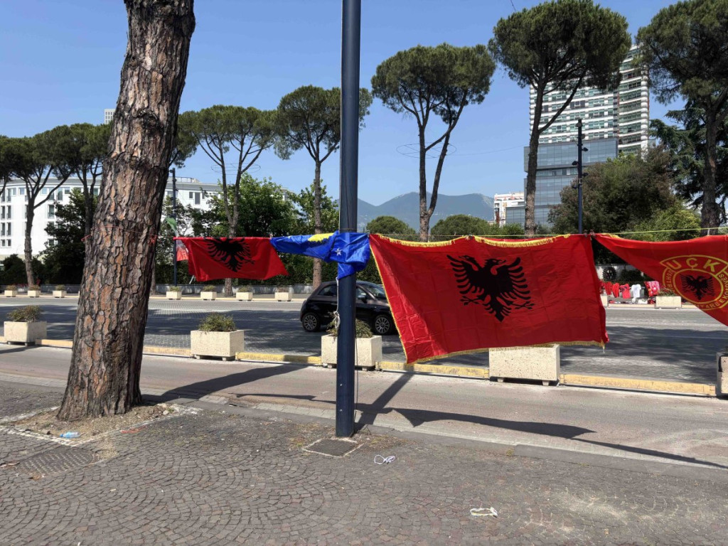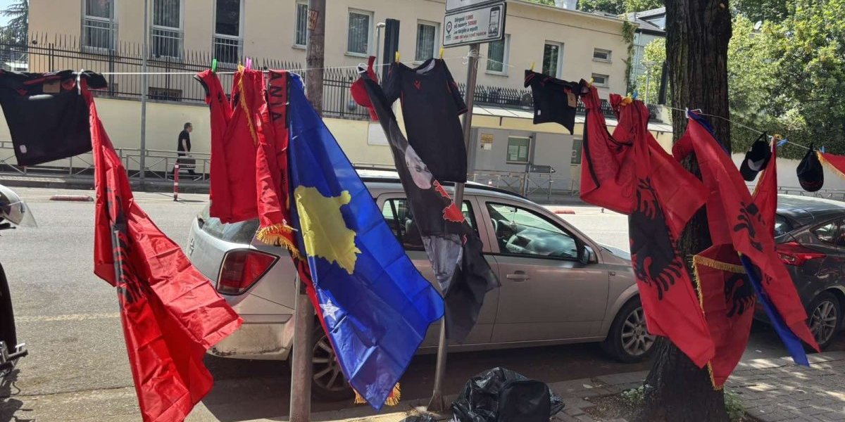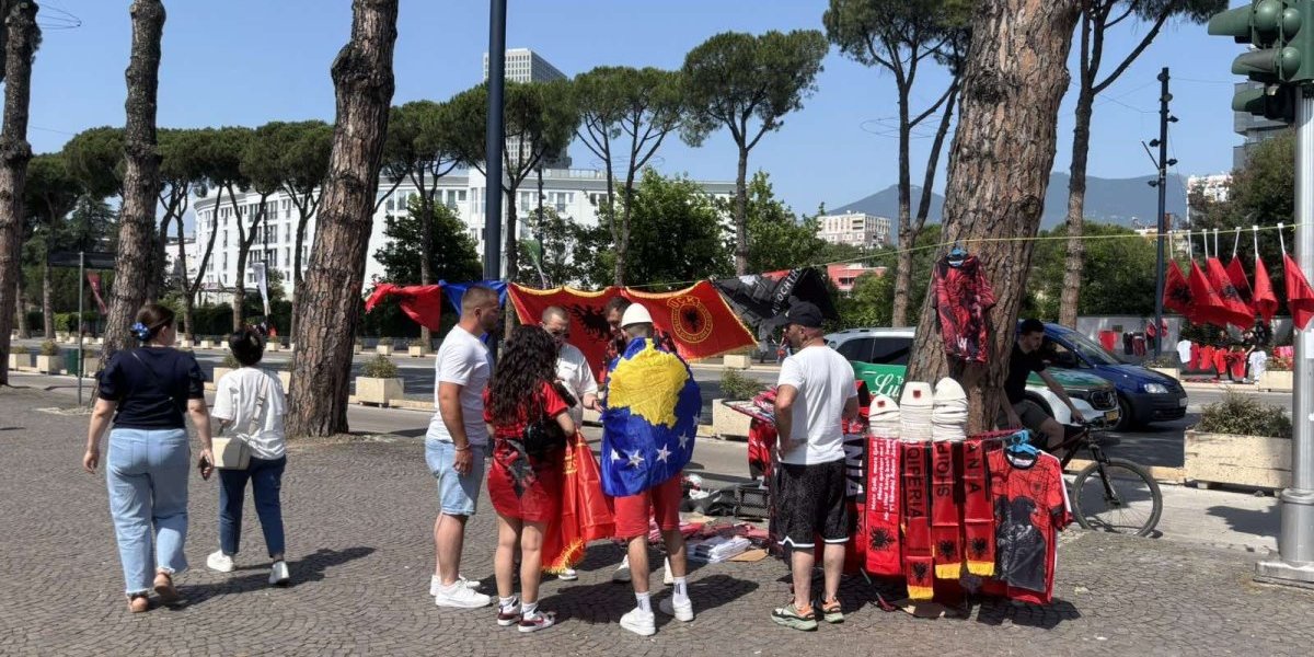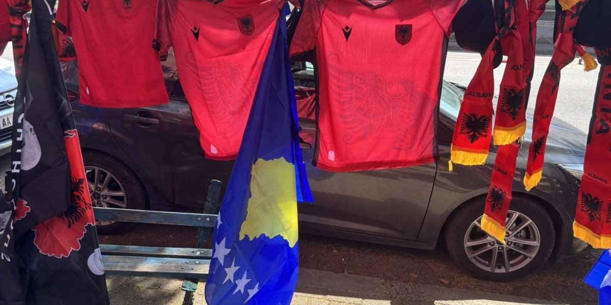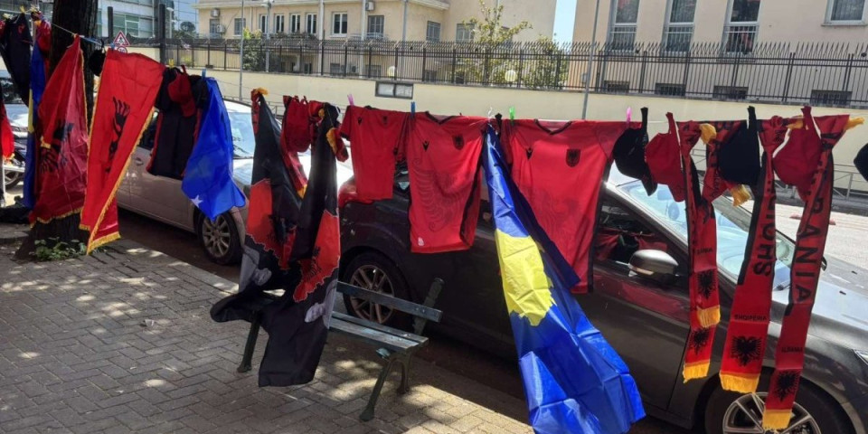 Potpuna euforija vlada u Tirani pred večerašnji meč između Albanije i Srbije (20.45, RTS 1, Arena premijum 1)! Na gradskim ulicama uveliko se prodaju zastave tzv. Kosova, simboli OVK, kao i zastave Velike Albanije.