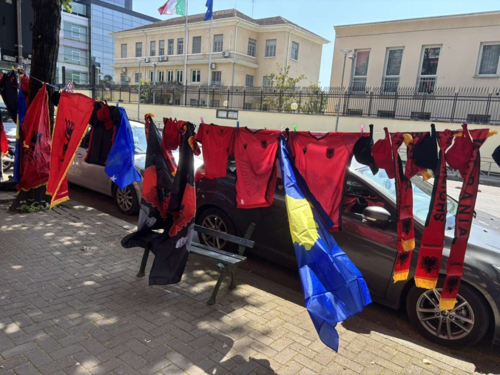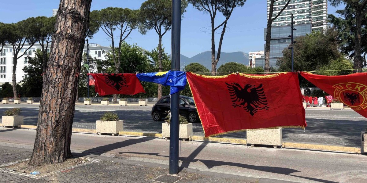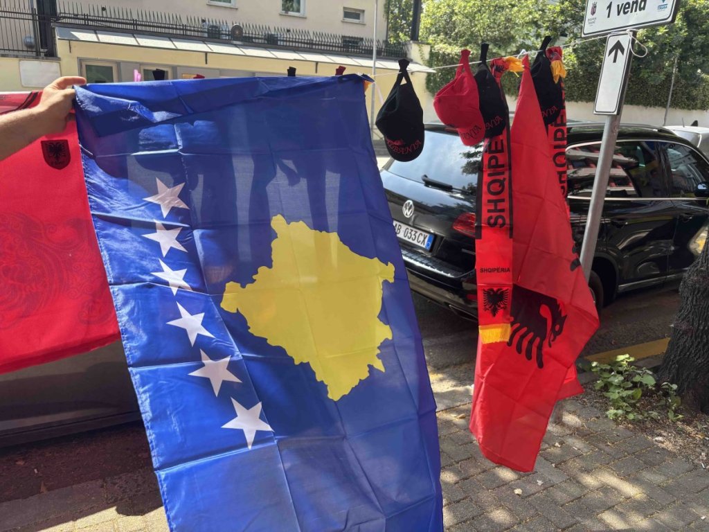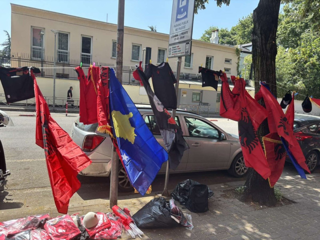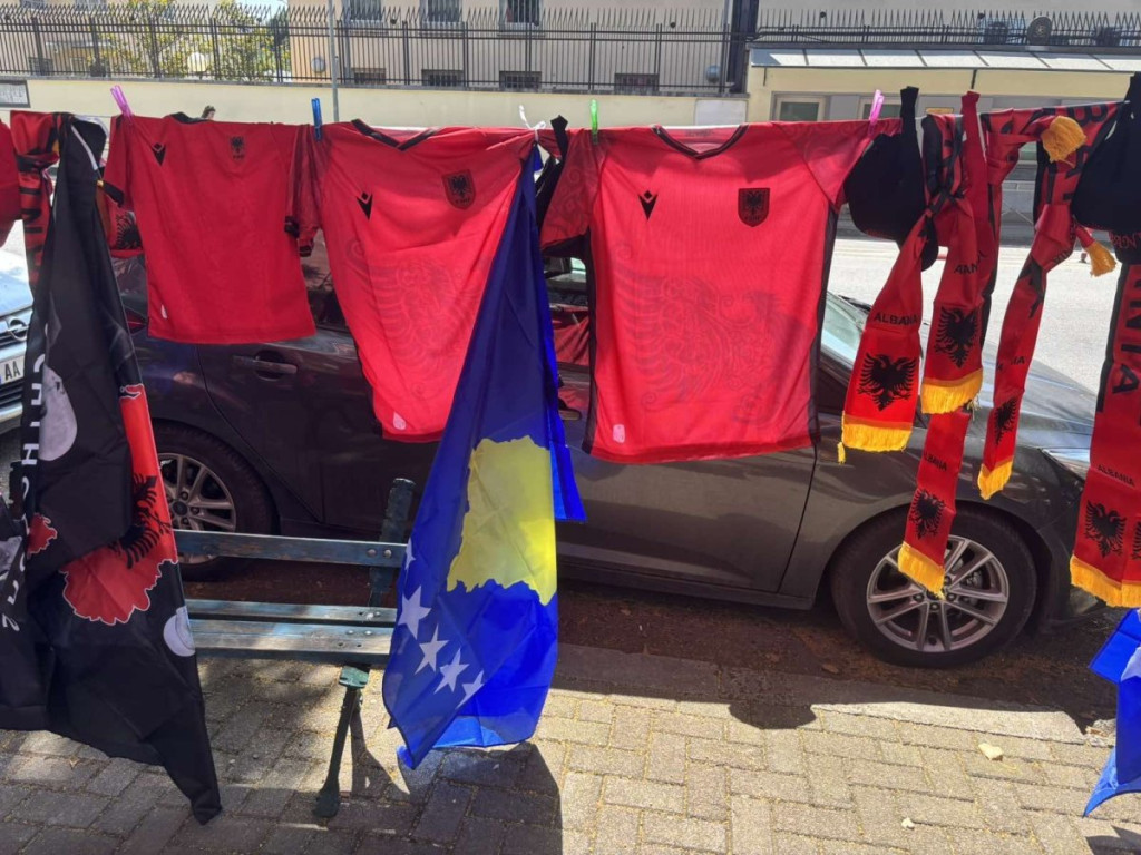 Potpuna euforija vlada u Tirani pred večerašnji meč između Albanije i Srbije (20.45, RTS 1, Arena premijum 1)! Na gradskim ulicama uveliko se prodaju zastave tzv. Kosova, simboli OVK, kao i zastave Velike Albanije.