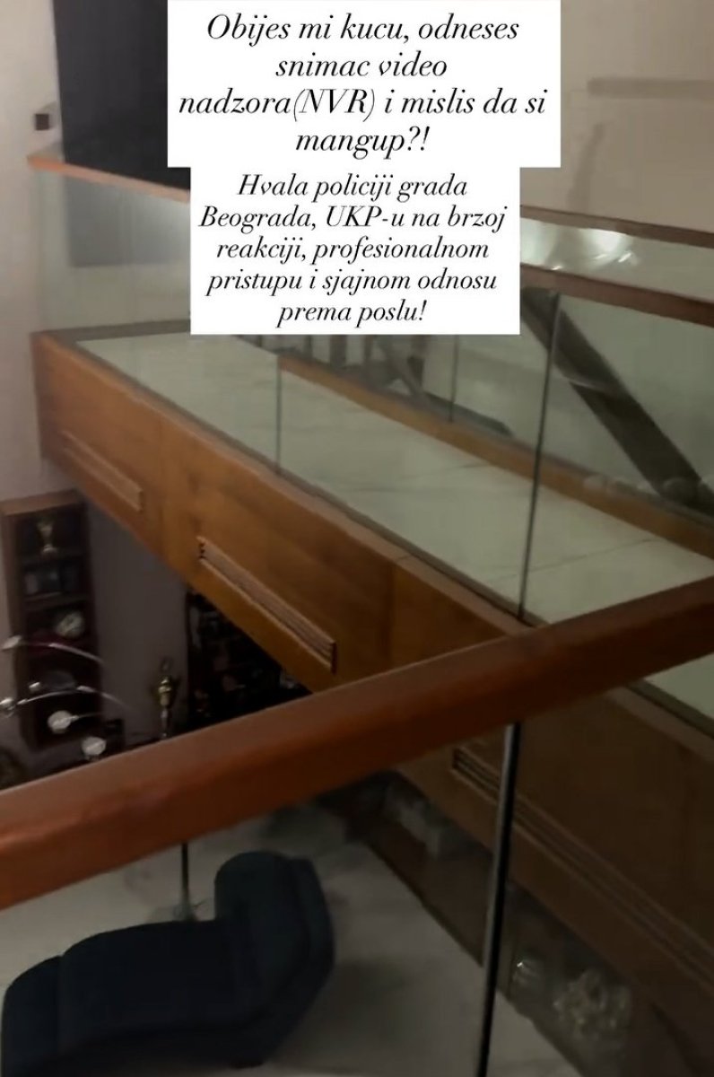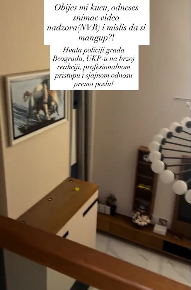 - Obiješ mi kuću odneseš odneseš snimač video nadzora i misliš da si mangup. Hvala policiji grada Beograda na brzoj reakciji i sjajnom odnosu prema poslu - napisala je na Instagramu.