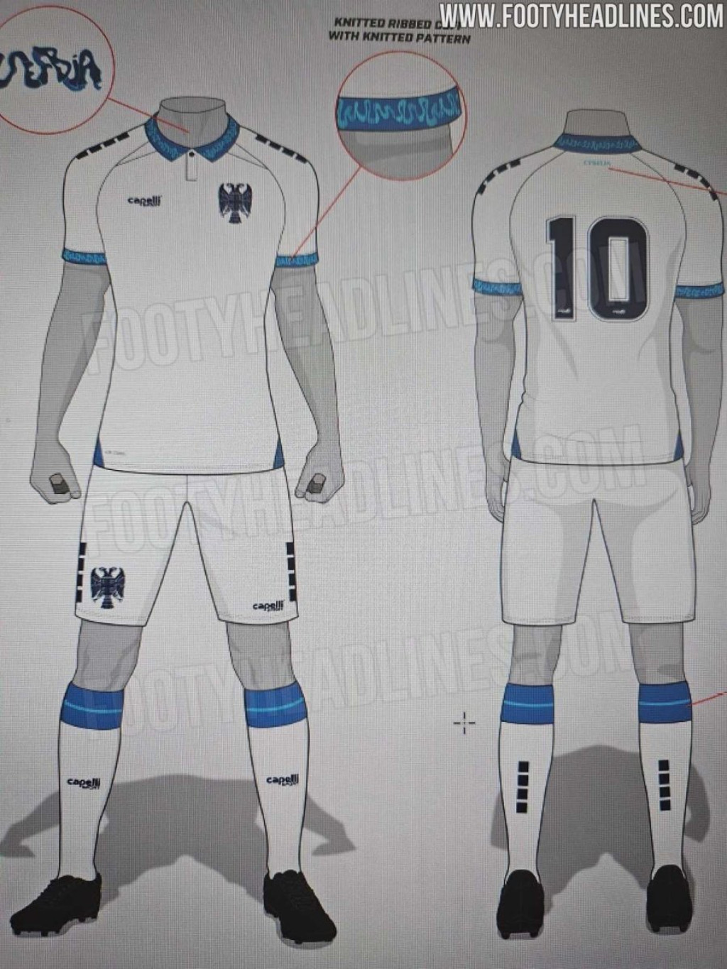 "Gostujući dres ima mornarsko plave detalje na kragni i oko rukava. Dobili smo informaciju da će se gostujući dres imati standardni fudbalski logo umesto orla kako je prethodno procurilo".