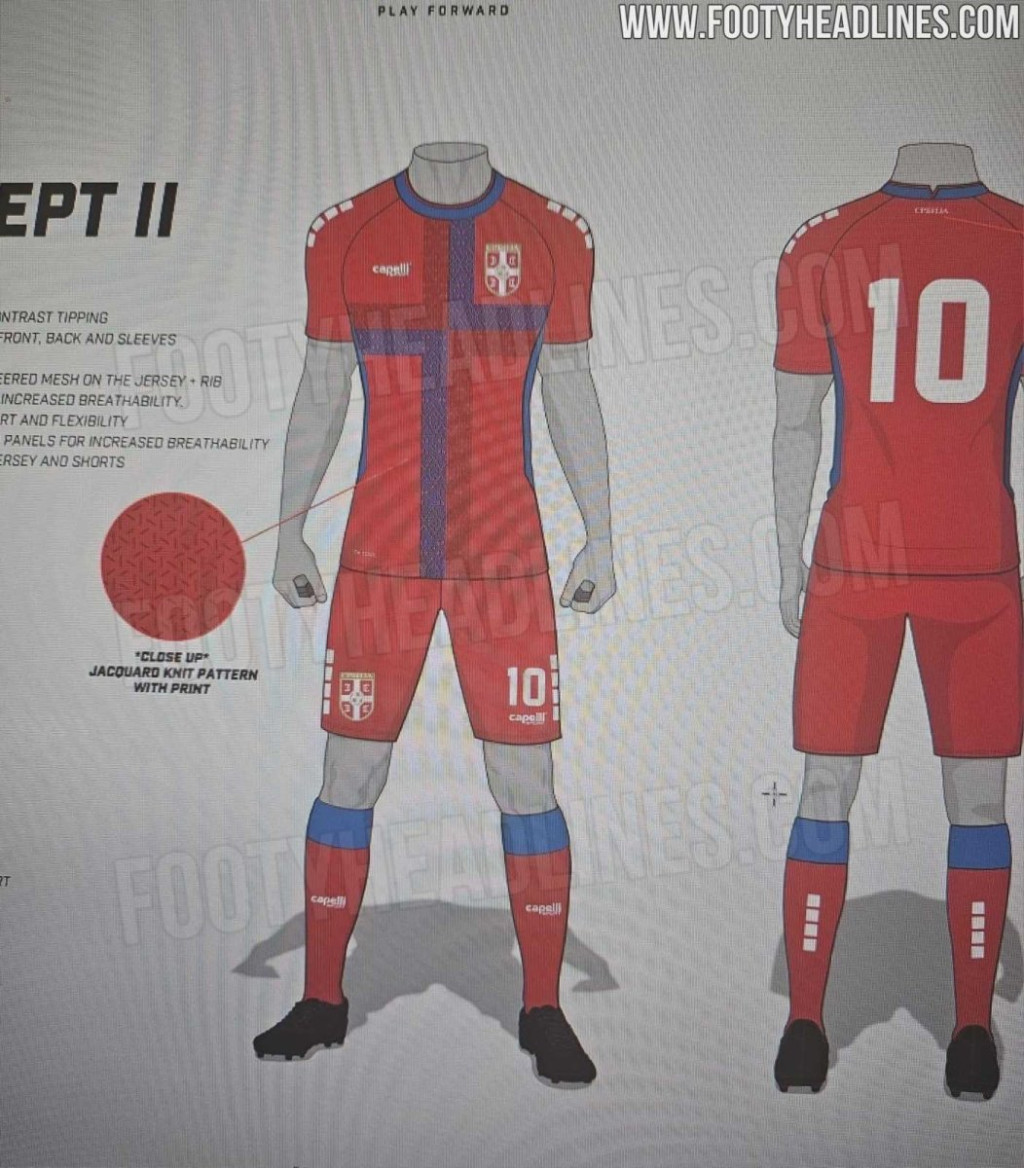 "Alternativni domaći dres je u tamnoj kraljevsko plavoj boji, odaje počast istorijskom sportskom identitetu Srbije. Pod ranijim imenom Jugoslavija, fudbalska reprezentacija igrala je u plavim dresovima, tradicija koja se i danas vidi u košarci", piše portla Footyheadlines.