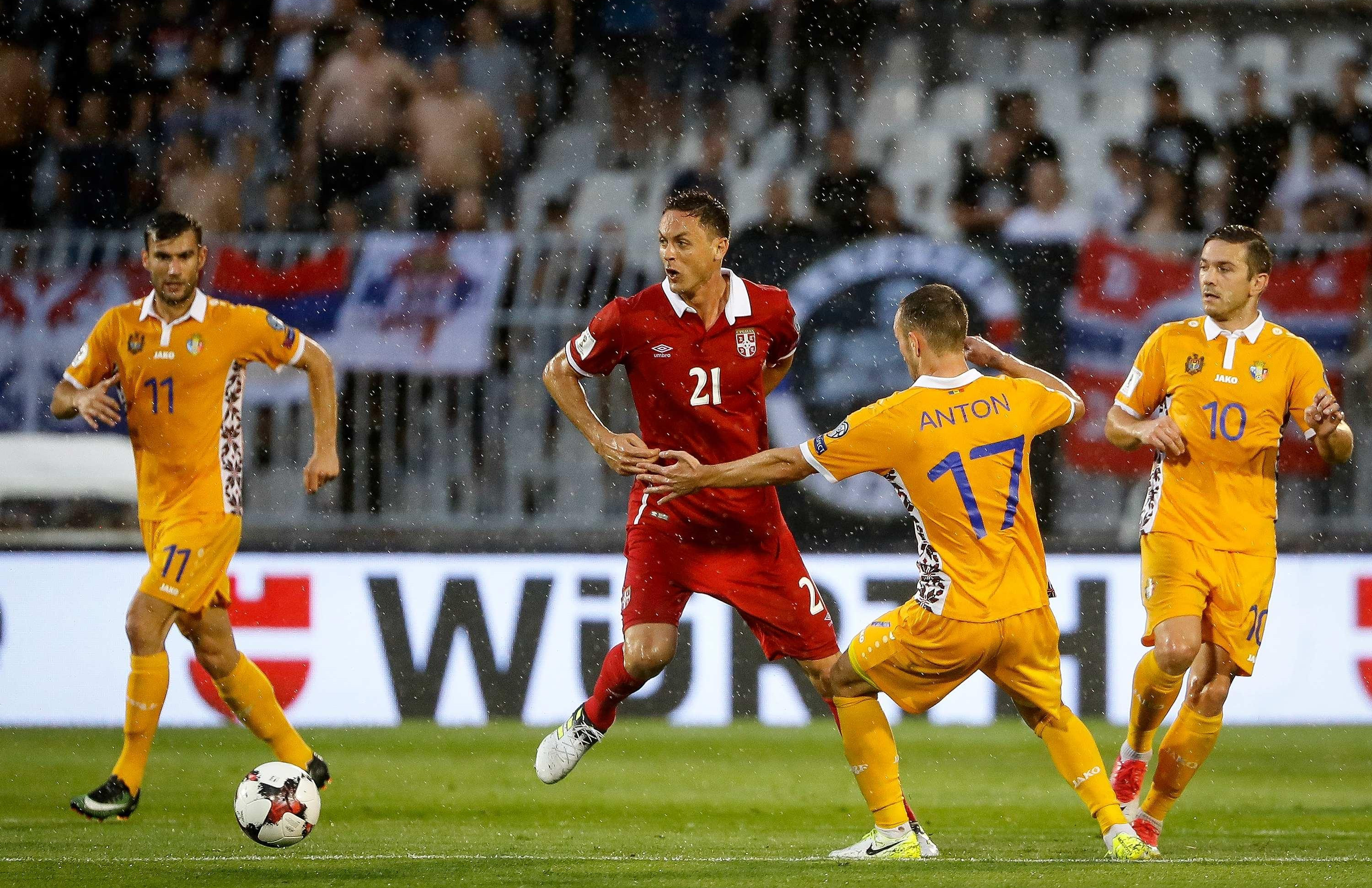 Aleksandar Mitrović je u 33. minutu mogao da zatrese mrežu Moldavije, ali se isprečila stativa.