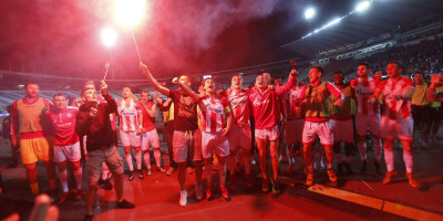 80'. Deset minuta do kraja meča, plus sudijska nadoknada. Crveno-beli blizu velike pobede.