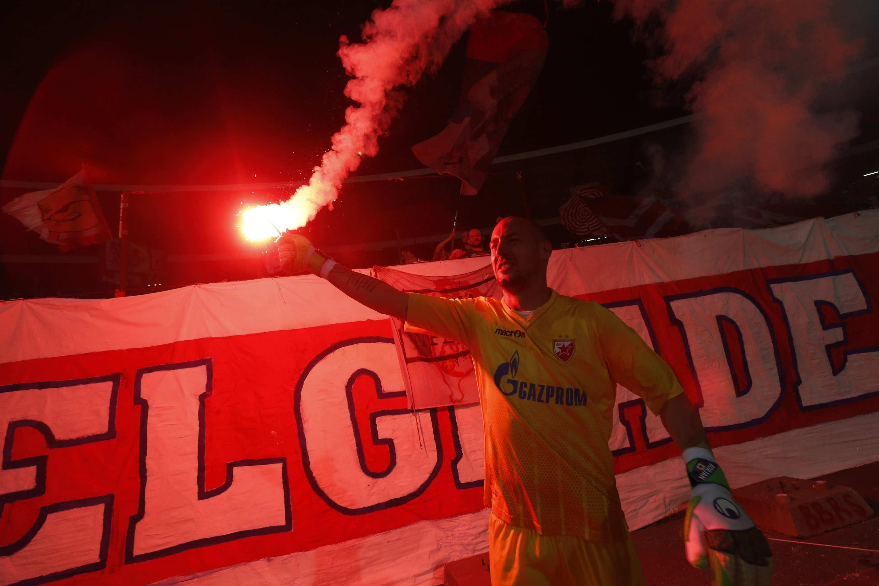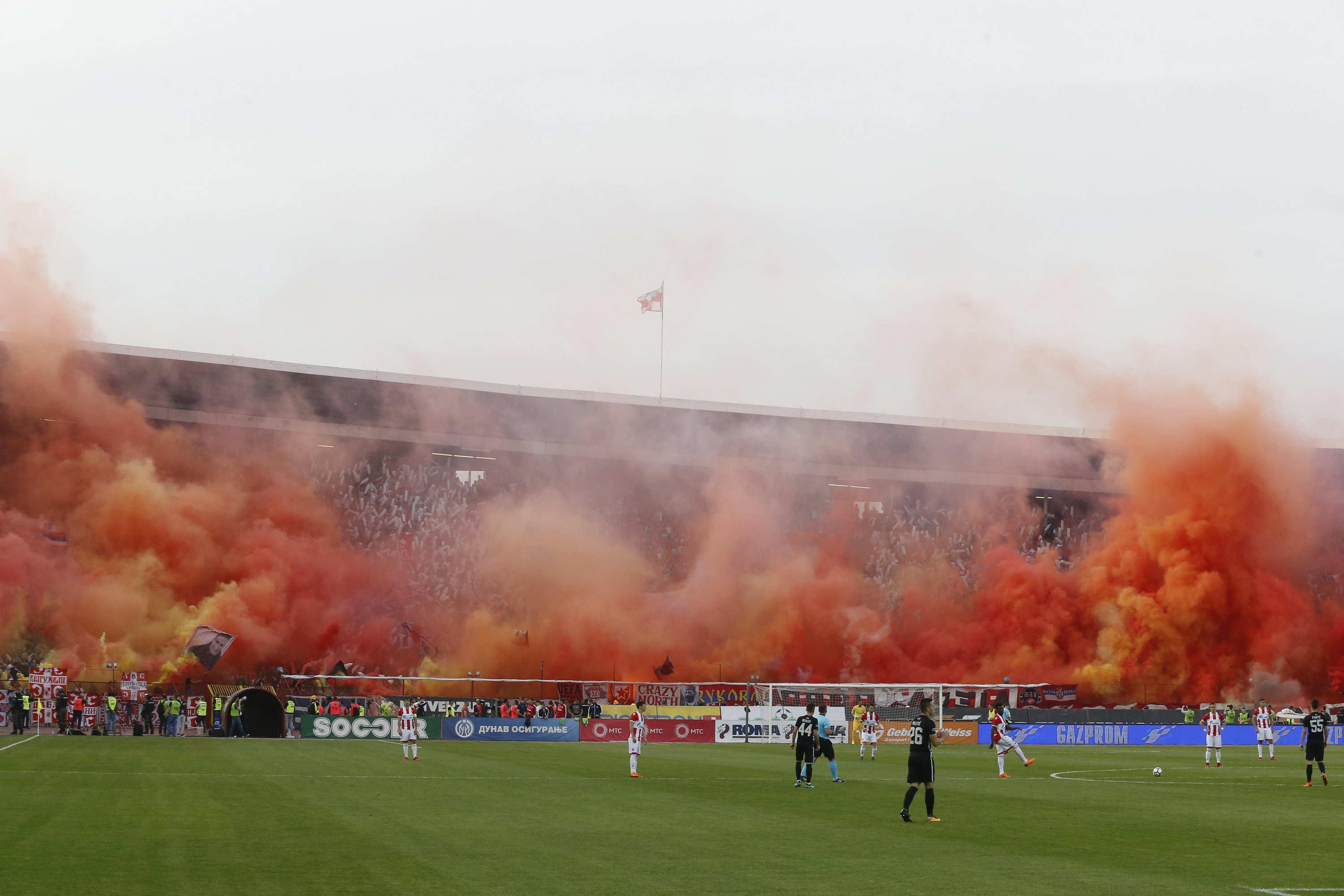 Na kratko prekinut meč, jer je nešto upalo u oko Zvezdinom golmanu Milanu Borjanu, verovatno nakon bakljade "grobara".