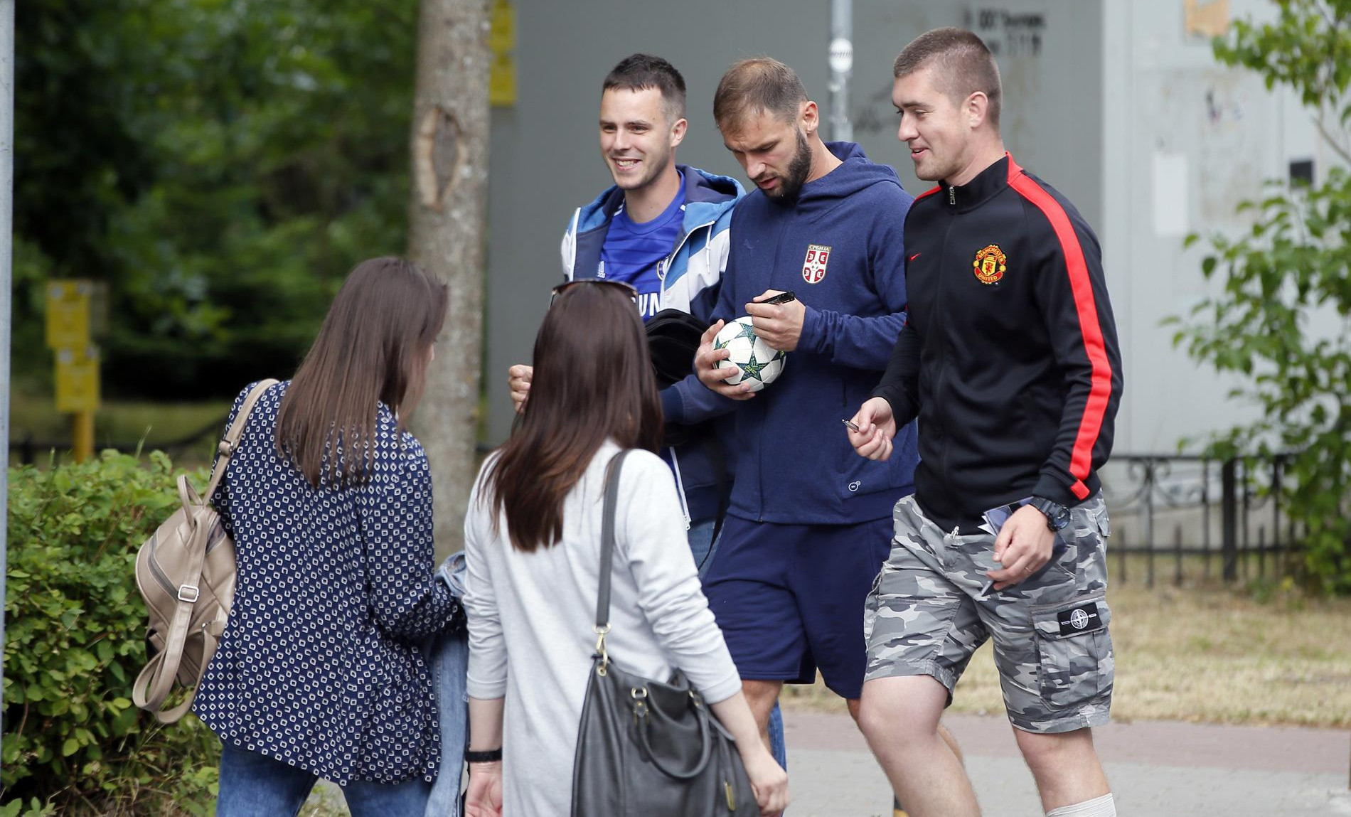 Obojici je uredno dao autogram i potom nastavio svojim putem, ne želeći da razgovara sa srpskim novinarima.
