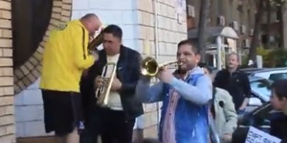 Među okupljenima se našao i Antićev pomoćnik Saša Ćurčić, koji je izašao pre trubače i delio im novčanice dok su ovi svirali.