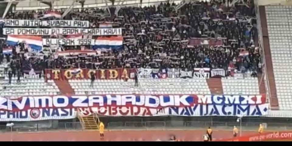 Torcida je istakla transparent koji veliča akciju "Bljesak" iz prvog maja 1995. godine kada je u Zapadnoj Slavoniji ubijeno oko 300 ljudi i proterano 15.000 Srba sa svojih ognjišta.