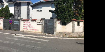 Huligani su uništili deo ograde, razbili su saksije sa cvećem i crepove na kući. Zapaljena plastična gajbica je bačena na vrata od garaže, a ispred je osvanuo i uvredljiv grafit.