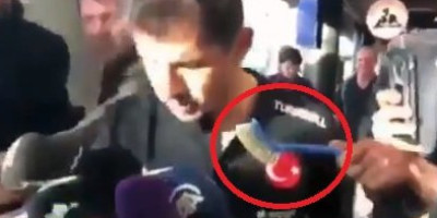 Dok je Emre davao izjavu, umesto mikrofona pojavila se četka za WC šolju. Neko od navijača domaćih ili novinara rešio je da na ovaj način ponizi rivala.