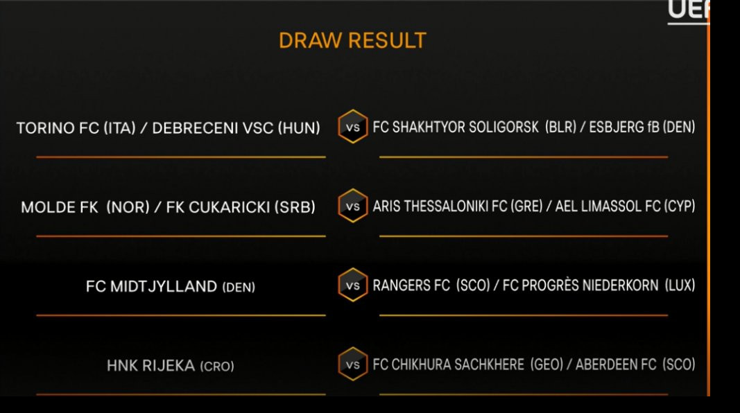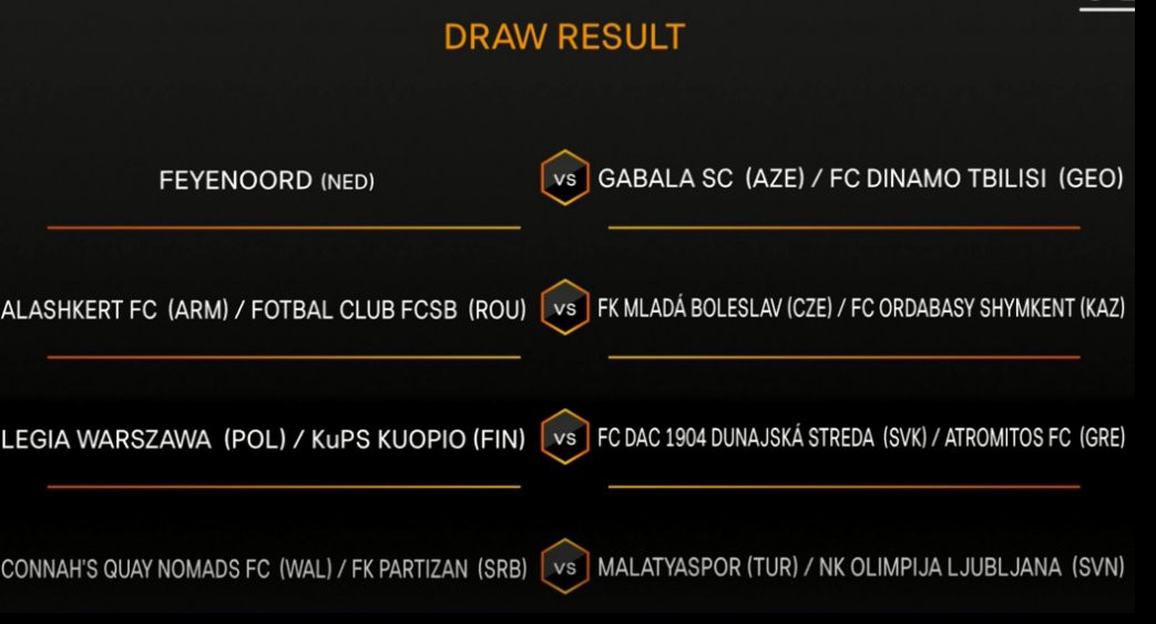 NAPOMENA: Zvezicom su označani parovi čiji će poraženi timovi iz kvalifikacija za Ligu šampiona biti potencijalni protivnici